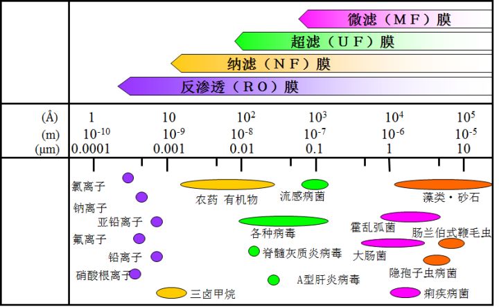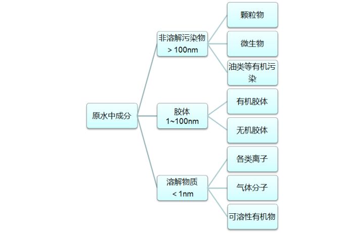水是極好的分散體,導致通??吹降乃锩娑己腥芙饣蚍侨芙獾挠袡C物和無機物。去除這些污染物,或者把它們從水中分離出去。按照污染物的尺寸分類將更加有效,這可以關聯(lián)到我們可以采用何種技術去去除,比如按如下分類: